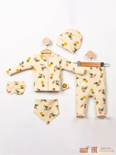 Papağanlı’lı 5’li Yenidoğan Unisex Takım Organik Bebek Hediyesi Hastane Çıkışı Seti