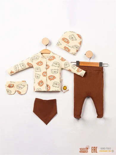 5’li Yenidoğan Erkek Bebek Hediyesi Takım Organik Kumaş Hastane Çıkışı Seti