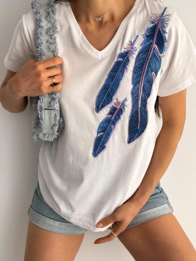 PUL PAYET İŞLEMELİ PAMUK TİŞÖRT