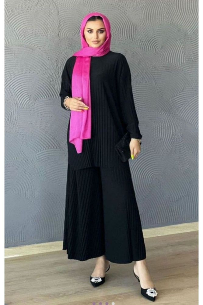 Uzun kollu tasarımı ile mevsim geçişlerinde ve serin havalarda konforlu bir kullanım sunar; Tunikli pantolonlu alt; üst takım, şık ve modern bir görünüm sağlar; Dokuma kumaş yapısı sayesinde dayanıklılık ve rahatlık bir arada sunulur; İnce dokusuyla hafif ve nefes alabilen bir yapıya sahiptir, gün boyu rahat hareket etme olanağı tanır; Standart boy kesimi ile farklı vücut tiplerine uyum sağlar ve şık bir siluet oluşturur; Geniş paça tasarımı modern ve trend bir görünüm kazandırırken, hareket özgürlüğü de sunar; Tesettür giyim koleksiyonuna özel olarak tasarlanmıştır; zarifliği ve tesettür prensiplerine uygunluğu ön plandadır; Regular kalıp ile vücut hatlarını saran ancak sıkmayan ideal oturumu sağlar; Tüm yaş gruplarına hitap eden geniş kullanıcı yelpazesi ile herkes için uygunluk gösterir;